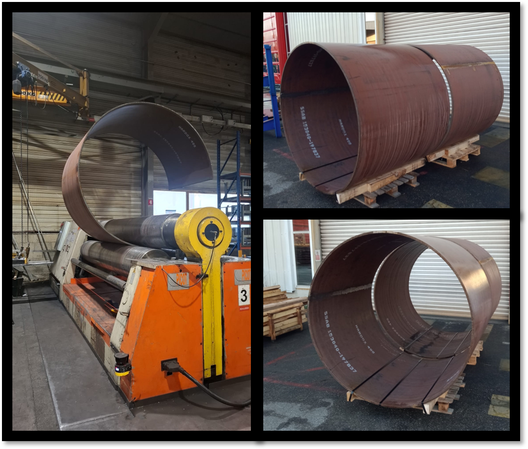 Réalisation de viroles en Hardox 400 (épaisseur 20 mm) destinées à des roues de compacteurs à déchets.